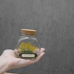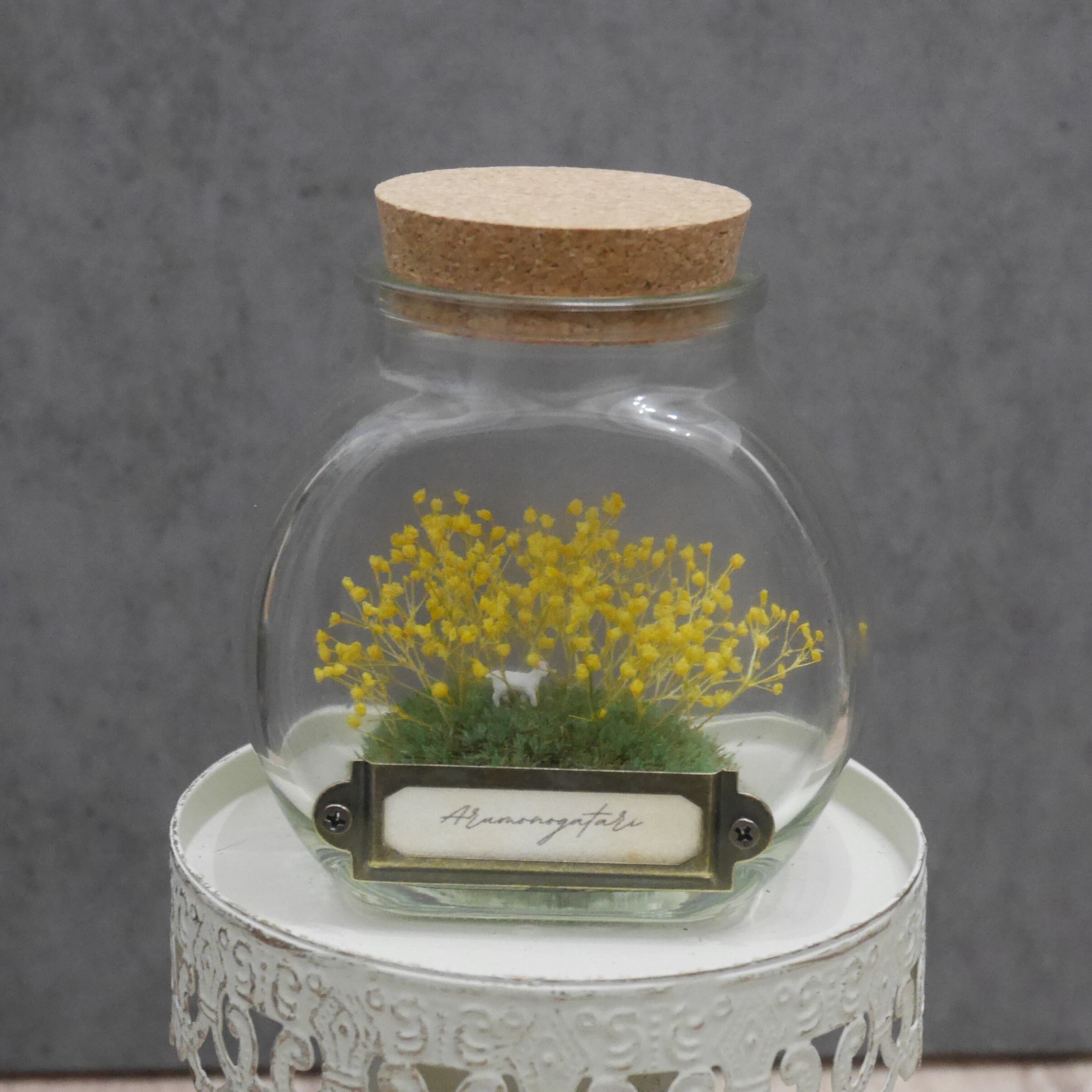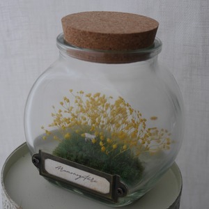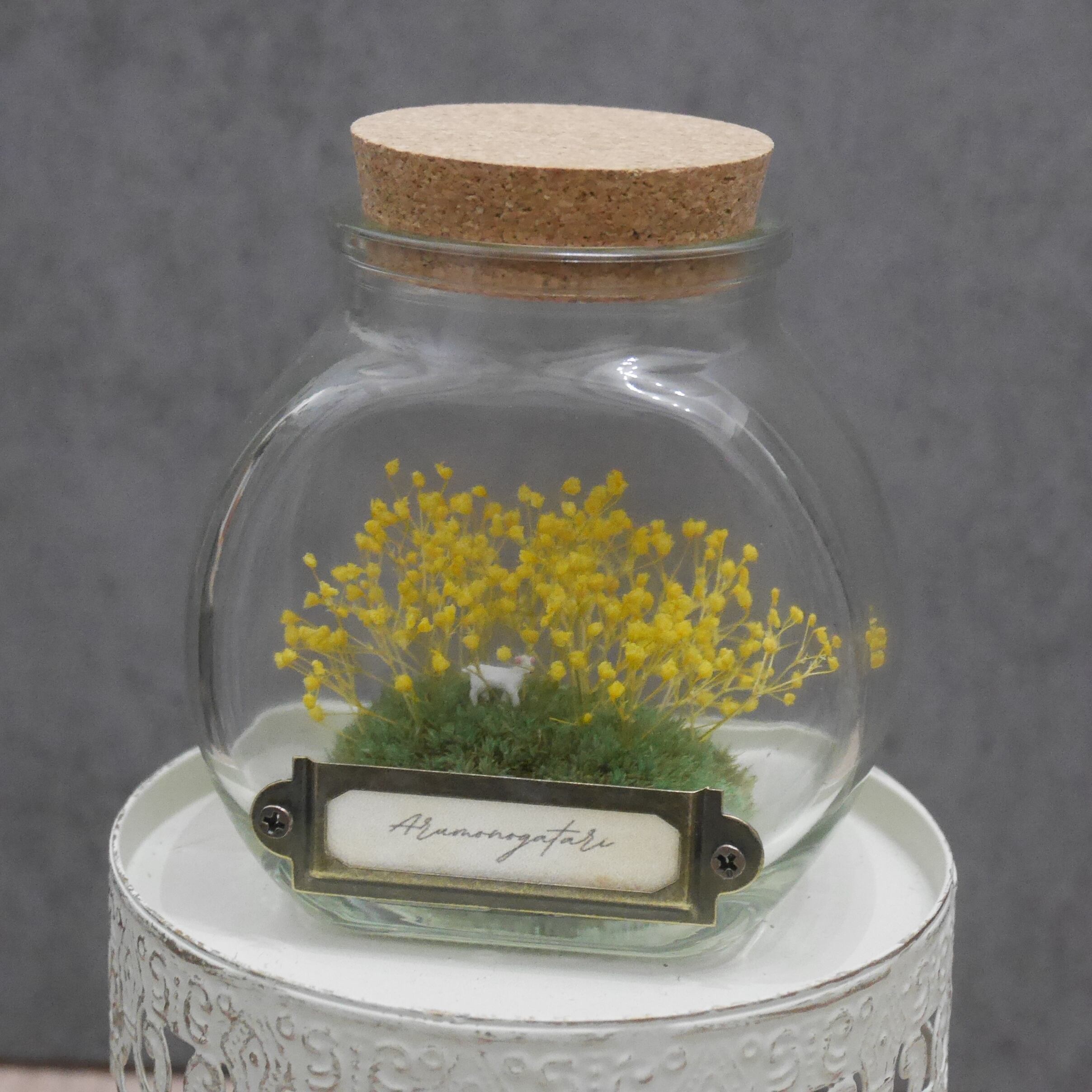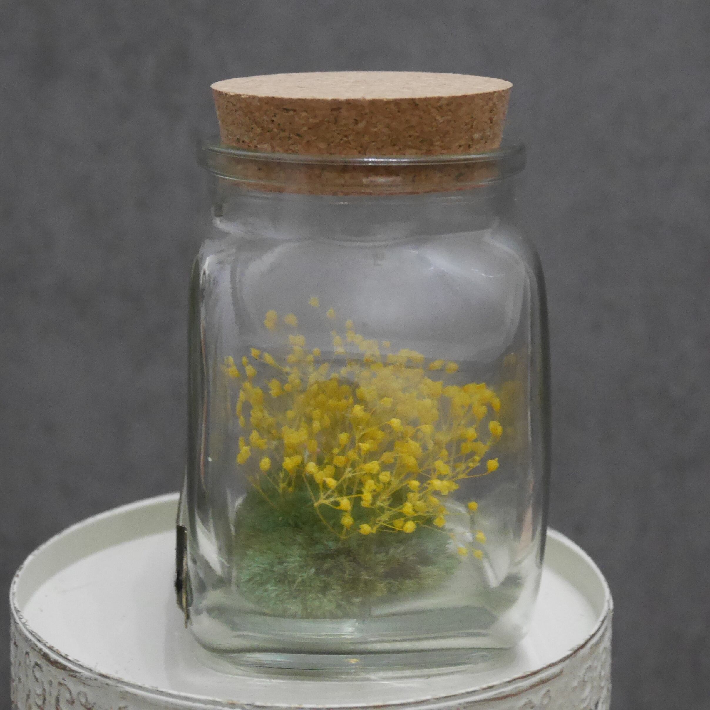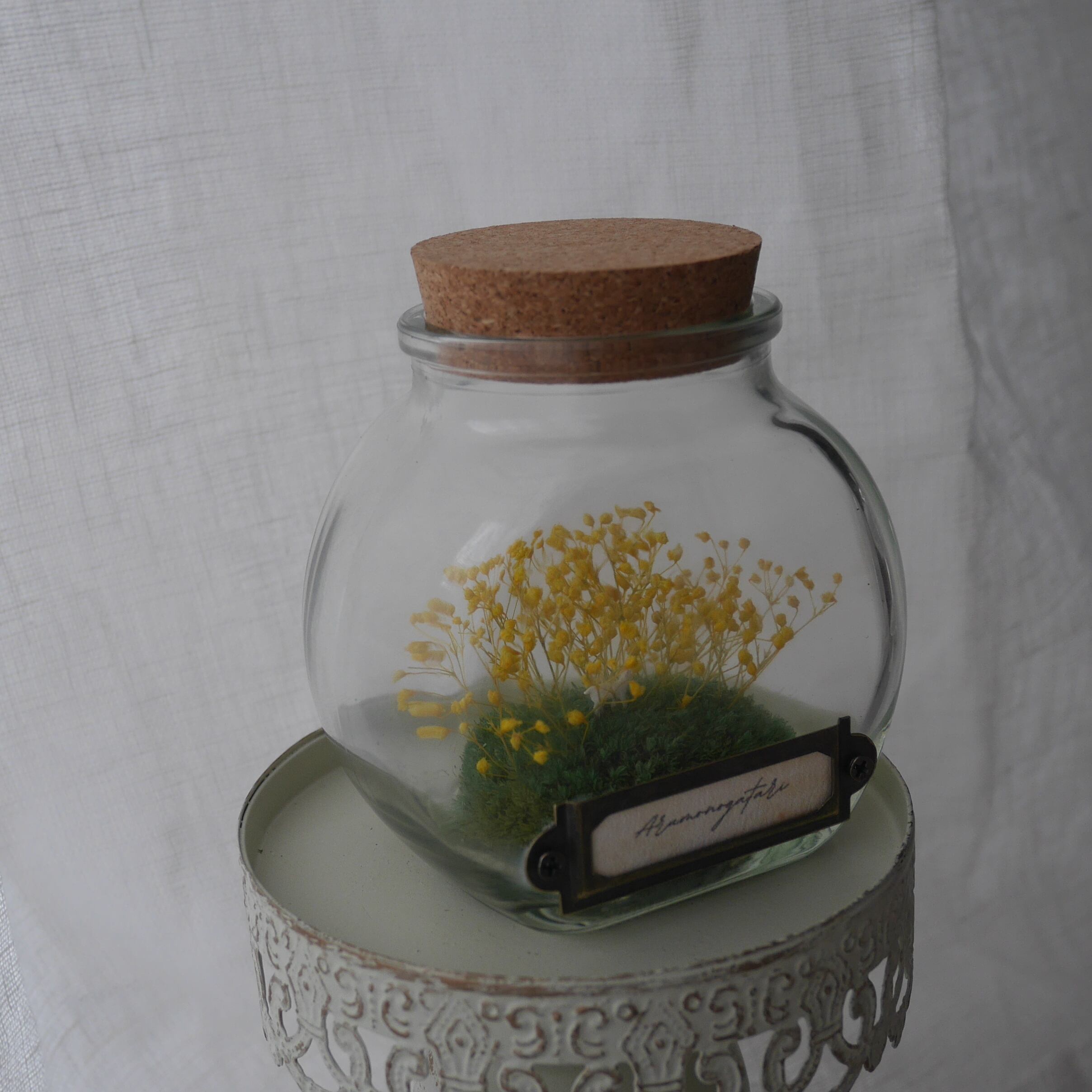 プリザーブド加工した苔とカスミソウを使用しているため、ドライ加工に比べ色持ちが良く、より長い時間楽しんでいただけます。