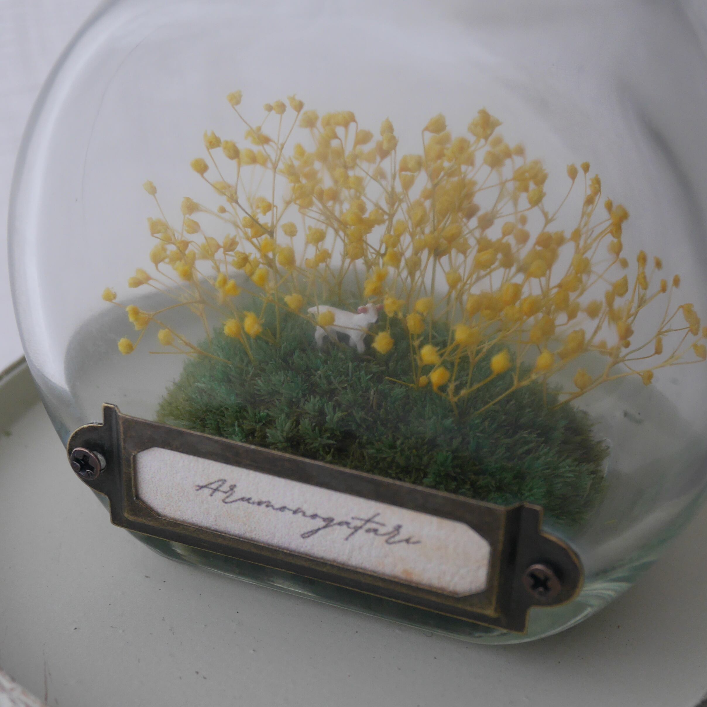 ガラスドームは下の土台をお待ちください。ガラス部分を持つと底が抜ける場合があります。